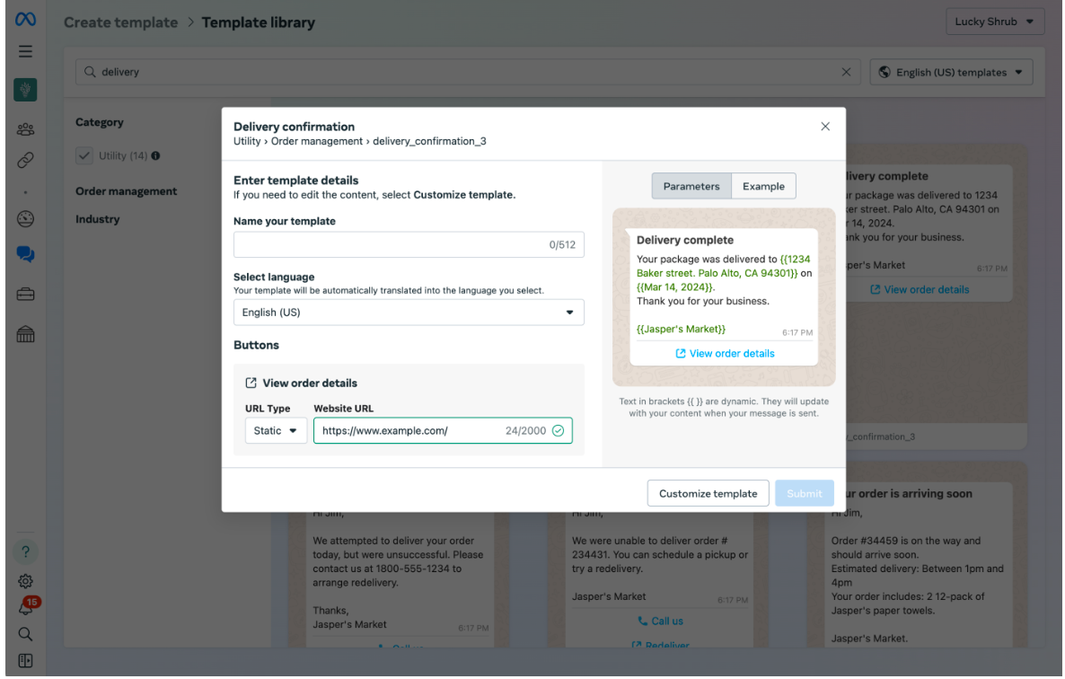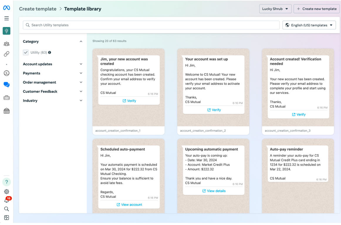 Meta has recently made available the Template Library, which makes it faster and easier for businesses to create templates for common use cases, like payment reminders, delivery updates and more.